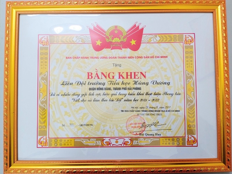 1. Bằng khen của Ban chấp hành Trung Ương Đoàn cho Liên đội: