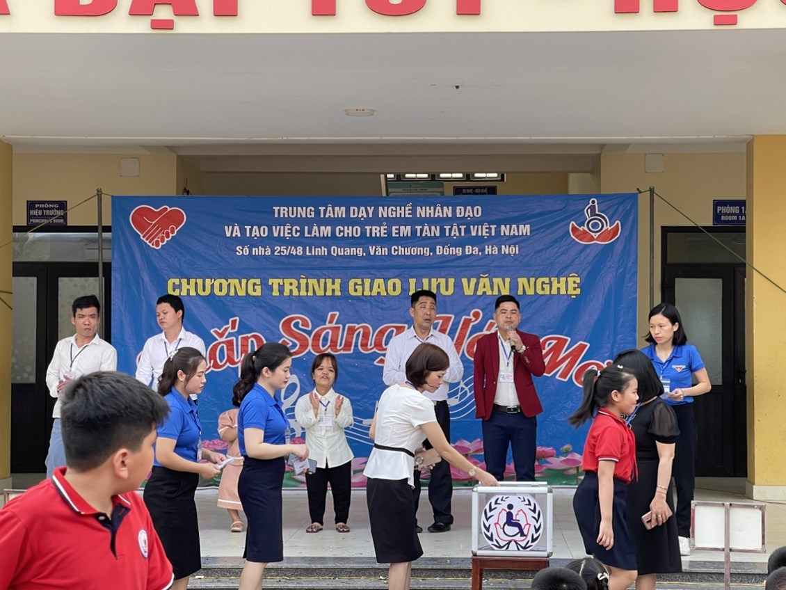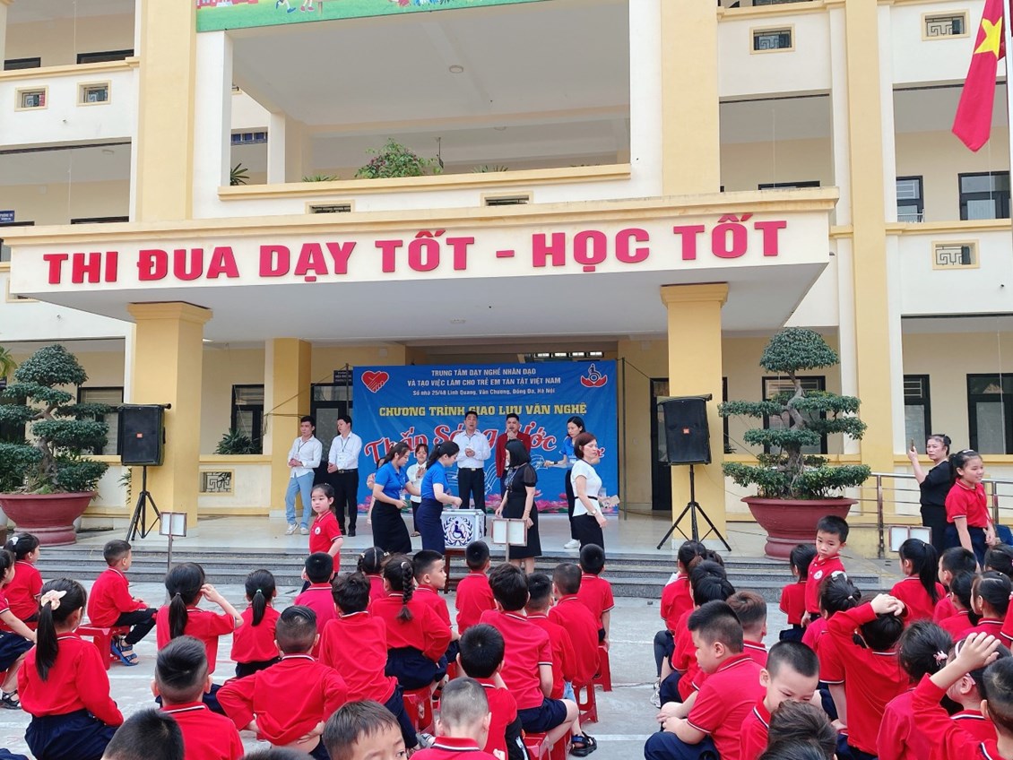 🔴 Buổi giao lưu mang ý nghĩa nhân đạo, từ thiện, mang tính nhân văn sâu sắc. Cán bộ, giáo viên, nhân viên và các em học sinh nhà trường đã thể hiện tinh thần "Tương thân tương ái", "Lá lành đùm lá rách" hỗ trợ cho trung tâm dạy nghề nhân đạo và tạo việc làm cho trẻ khuyết tật Việt Nam với số tiền ý nghĩa.