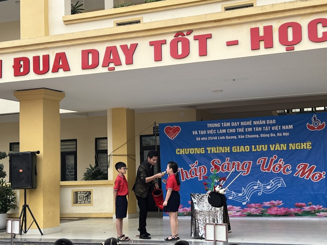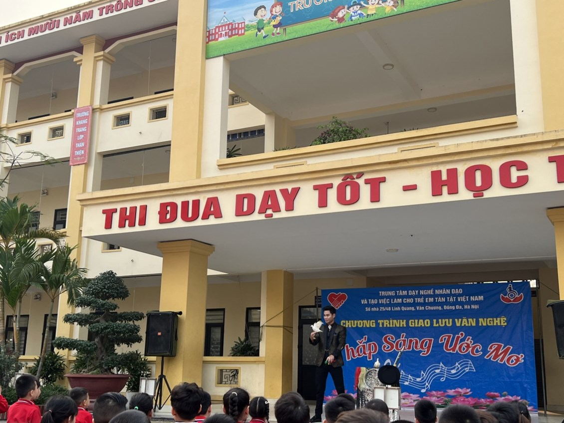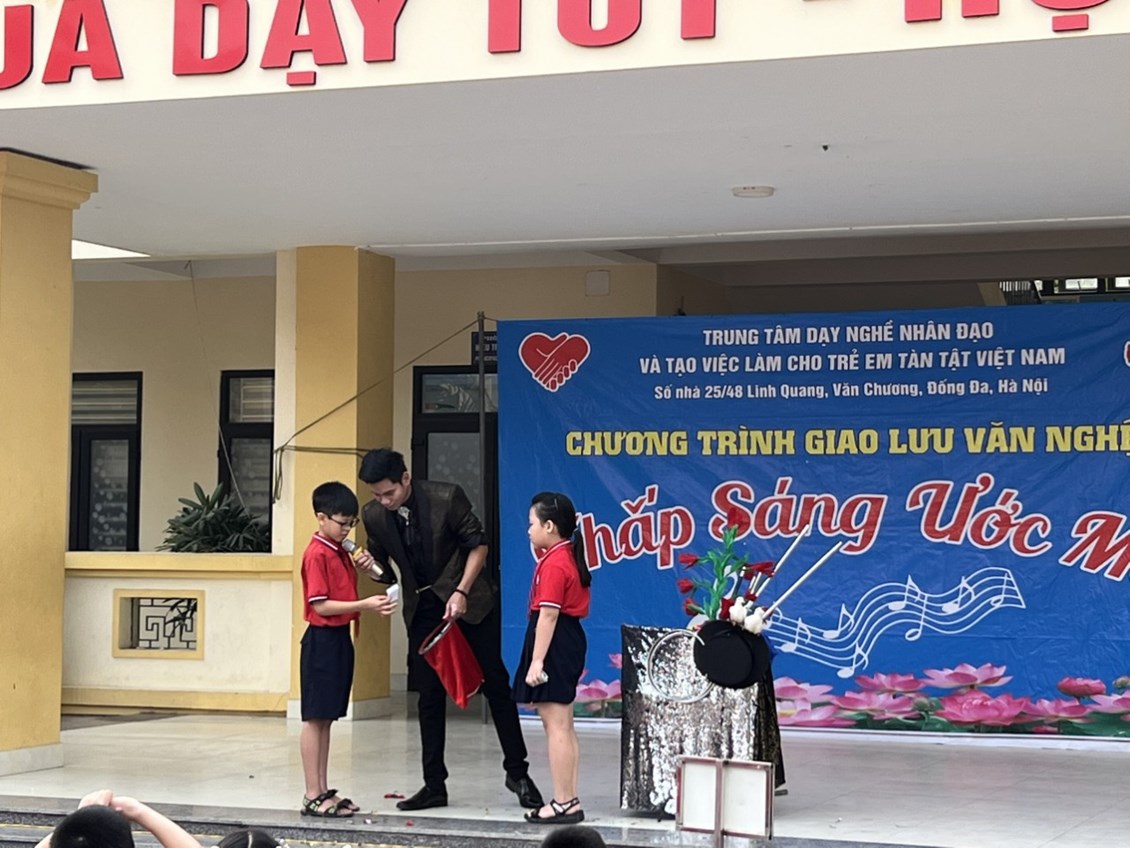 🔴 Tại chương trình các anh, chị và các bạn của Trung tâm nghề nhân đạo và tạo việc làm cho trẻ khuyết tật Việt Nam đã mang đến cho các em học sinh trường Tiểu học Hùng Vương nhiều tiết mục văn nghệ, ảo thuật vô cùng hấp dẫn và đặc sắc.