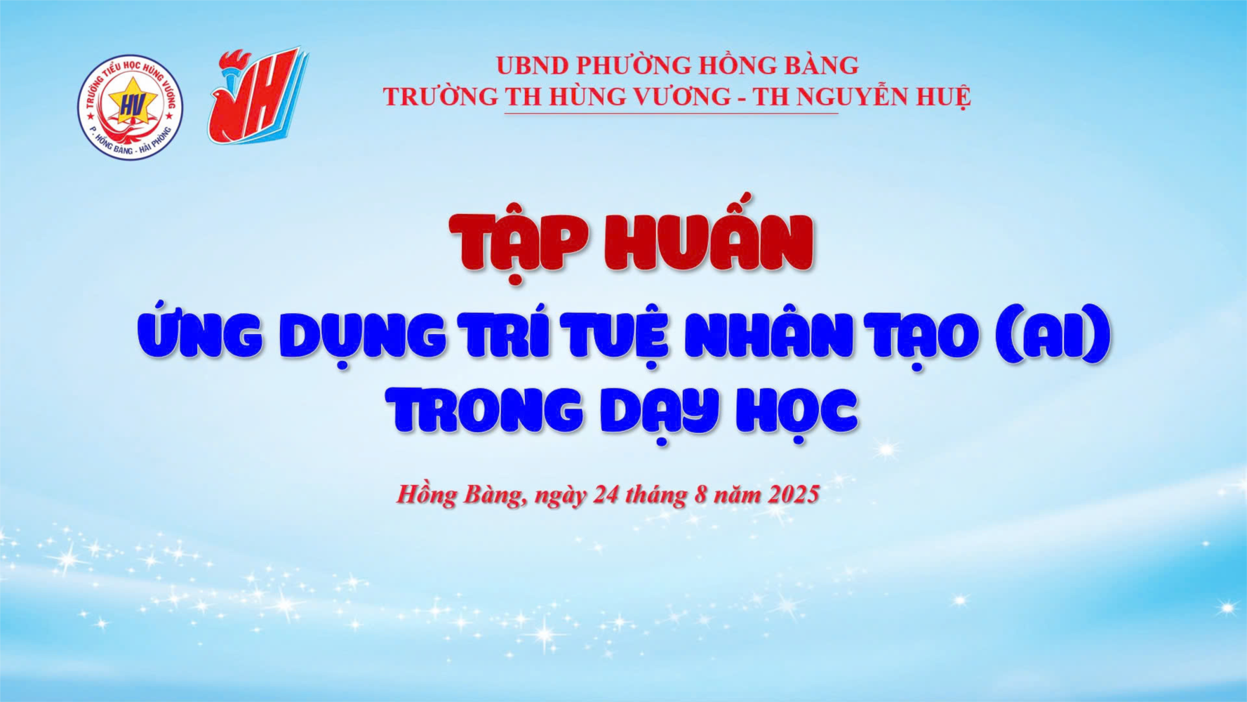 🤖 Trí tuệ nhân tạo (AI) đang trở thành một phần không thể thiếu trong ngành giáo dục hiện đại, mang đến những đột phá trong cách giảng dạy và học tập. Trong giáo dục, AI tạo ra những phương thức giảng dạy và học tập mới. Thực hiện Kế hoạch chuyên môn và tiếp tục Kế hoạch về công tác bồi dưỡng cán bộ, giáo viên, nhân viên hè 2025 và năm học 2025-2026, đồng thời thực hiện Phong trào "Bình dân học vụ số" trong đó nhấn mạnh yêu cầu sử dụng công nghệ số hiệu quả, an toàn và sáng tạo trong dạy học và giáo dục, ngày 24/8/2025, trường Tiểu học Hùng Vương và trường Tiểu học Nguyễn Huệ đã tổ chức chương trình tập huấn “Ứng dụng trí tuệ nhân tạo (AI) trong dạy học Tiểu học” cho toàn thể cán bộ, giáo viên trong nhà trường.