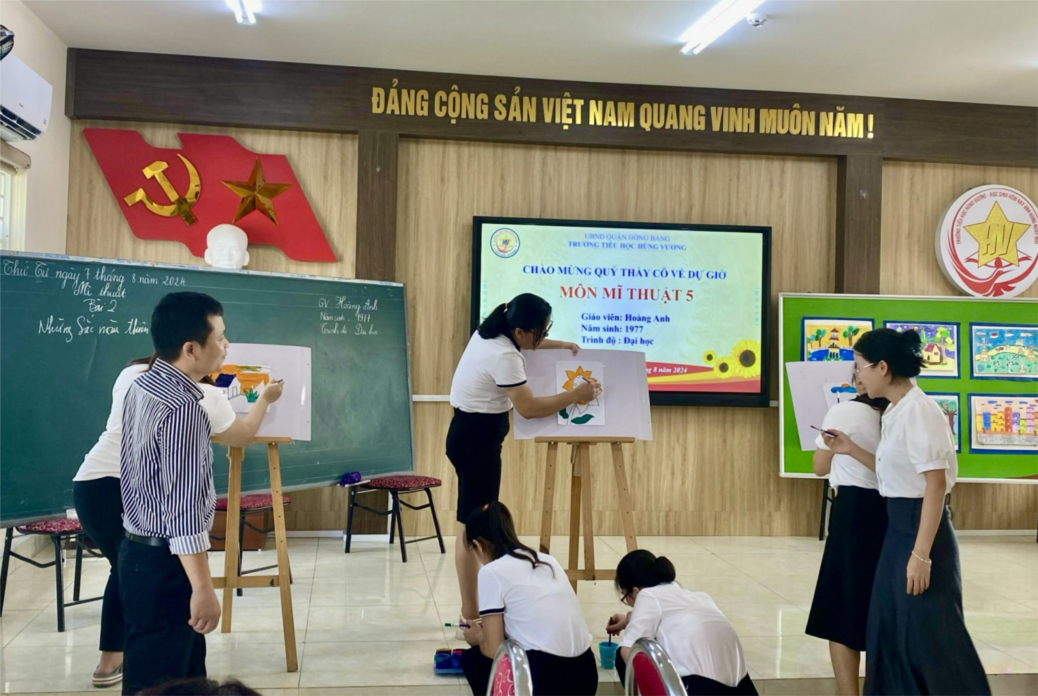 🎈Trong chuỗi các hoạt động bồi dưỡng giáo viên hè 2024, trường Tiểu học Hùng Vương tổ chức chuyên đề: Lấy học sinh làm trung tâm để phát huy năng lực tự học và sáng tạo trong môn Âm nhạc, Mĩ thuật lớp 5. Trong hai tiết dạy ngày hôm nay, các thầy cô giáo đã luôn lấy học sinh làm trung tâm, coi trọng việc tổ chức cho học sinh hoạt động độc lập hoặc theo nhóm (thảo luận, quan sát vật mẫu, …) thông qua đó học sinh vừa tự lực nắm các tri thức, kĩ năng mới, đồng thời được rèn luyện về phương pháp tự học, được tập dượt phương pháp nghiên cứu. Hai thầy cô giáo luôn quan tâm vận dụng vốn hiểu biết và kinh nghiệm của từng cá nhân và của tập thể học sinh để xây dựng các hoạt động tạo điều kiện thuận lợi cho sự bộc lộ và phát triển tiềm năng của mỗi em.