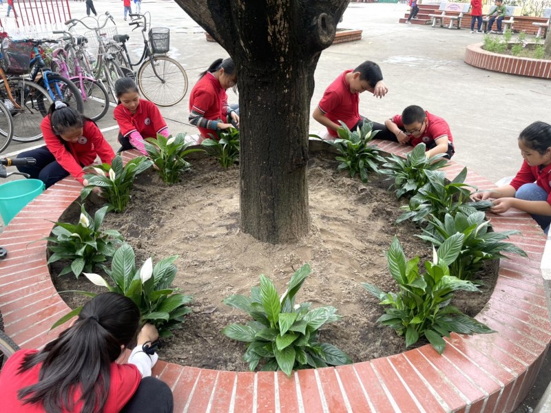 🌼 Trong không khí thi đua sổi nổi của tuổi trẻ toàn quận thiết thực tổ chức các hoạt động chào mừng Đại hội Đoàn các cấp nhiệm kì 2022-2027 và tiến tới kỷ niệm 82 năm ngày thành lập Đội TNTP Hồ Chí Minh, các em học sinh trường TH Hùng Vương tích cực thi đua xây dựng công trình măng non “Vườn hoa em chăm”