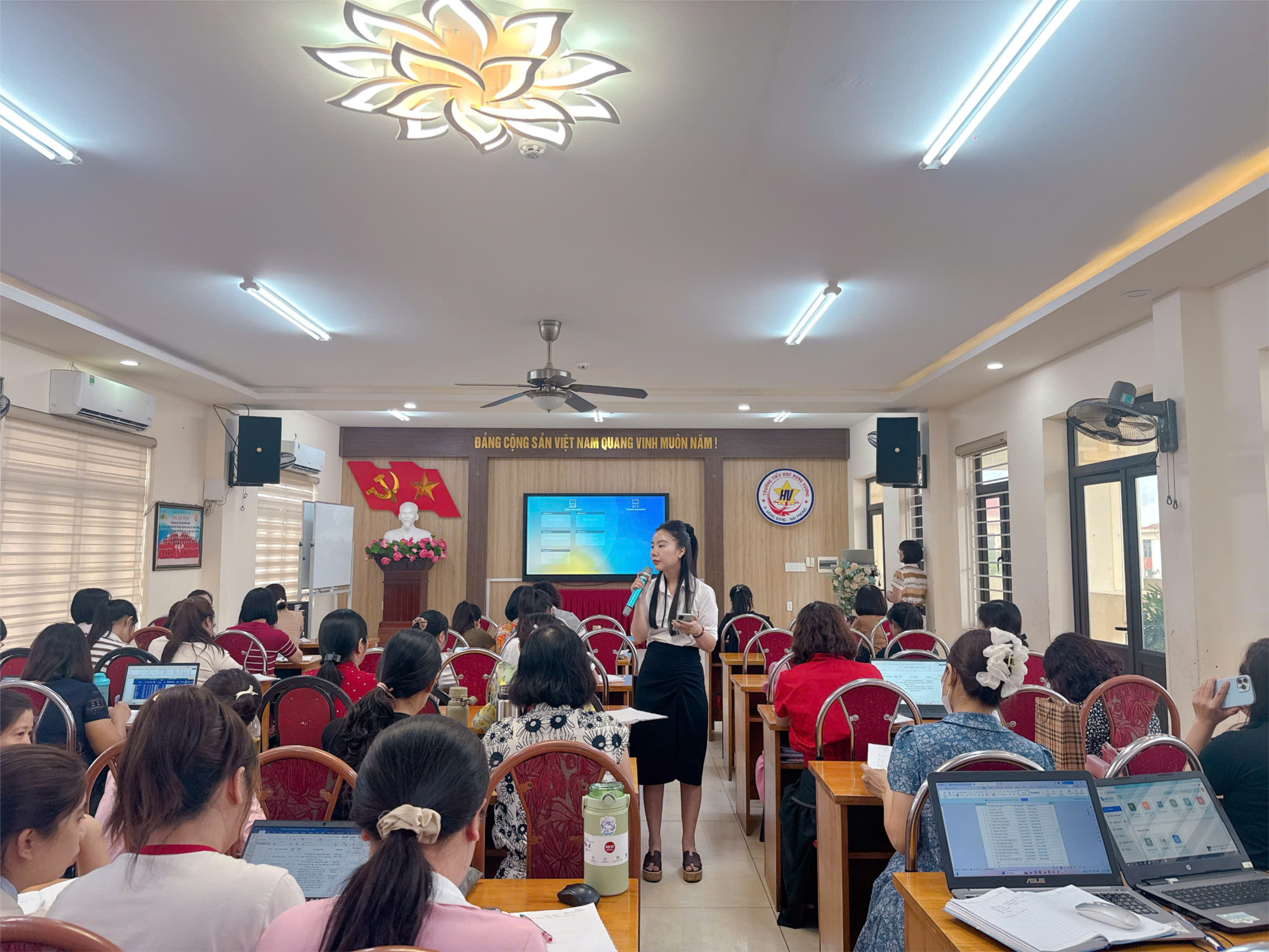 🌟 Hướng tới trường học số – Nâng cao hiệu quả quản lí và phục vụ phụ huynh, học sinh đặc biệt trong bối cảnh Ngành giáo dục đang có nhiều nỗ lực trong ứng dụng chuyển đổi số vào hoạt động của ngành cũng như chuyển đổi số trong quản lý, dạy, học và kiểm tra, đánh giá chất lượng dạy và học, ngày 26/8/2025, Trường Tiểu học Hùng Vương đã tổ chức buổi tập huấn sử dụng ứng dụng eNetViet cho toàn bộ cán bộ, giáo viên, nhân viên trong nhà trường.
