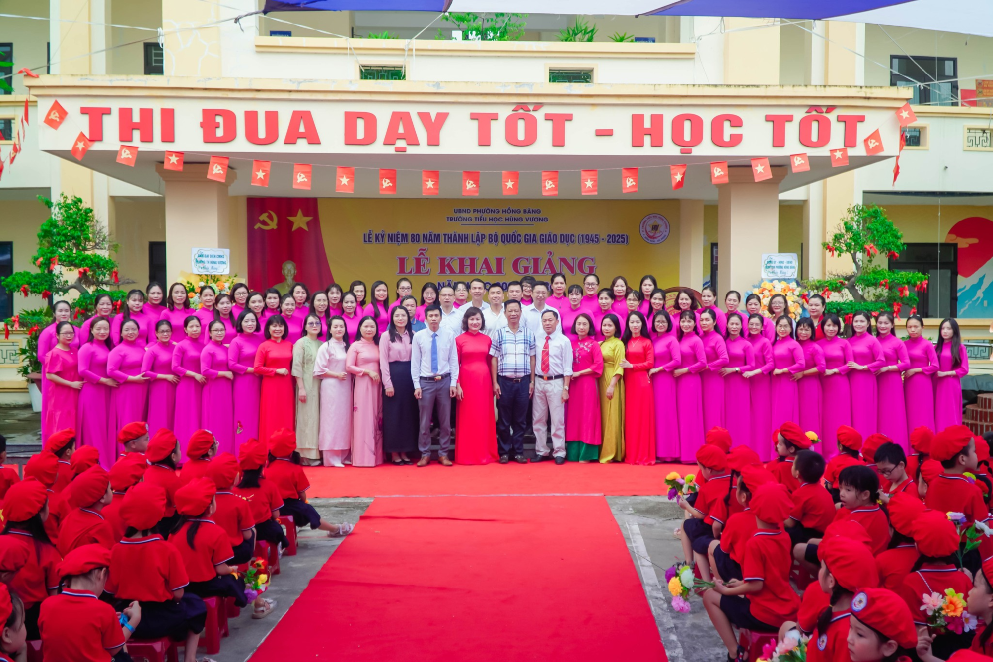 ☘️ Trong ngày khai giảng, nhà trường vui mừng được đón nhận những lẵng hoa tươi thắm chúc mừng từ các đồng chí lãnh đạo Đảng ủy - HĐND-UBND-UBMTTQ Việt Nam phường Hồng Bàng, Ban Đại diện CMHS, các đơn vị liên kết.