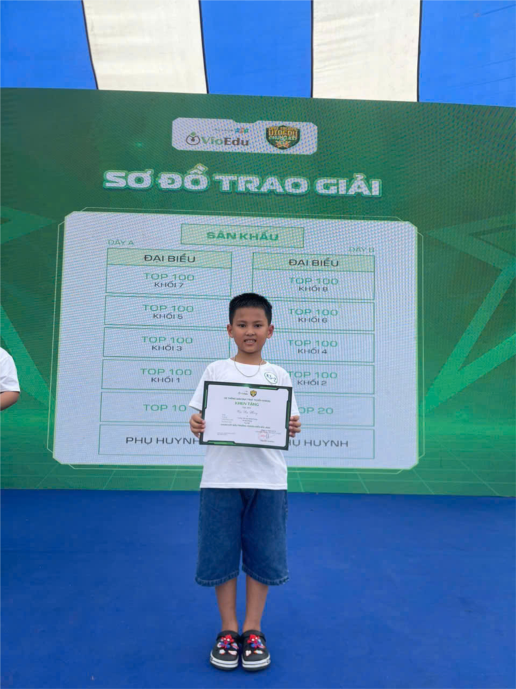 🌟 Và thật tự hào khi em Cao Hải Phong – học sinh lớp 3A2, trường Tiểu học Hùng Vương đã xuất sắc ghi tên mình vào TOP 100 thí sinh xuất sắc nhất, chinh phục đấu trường trí tuệ VioEdu với tinh thần quyết tâm, thông minh và bản lĩnh vững vàng!