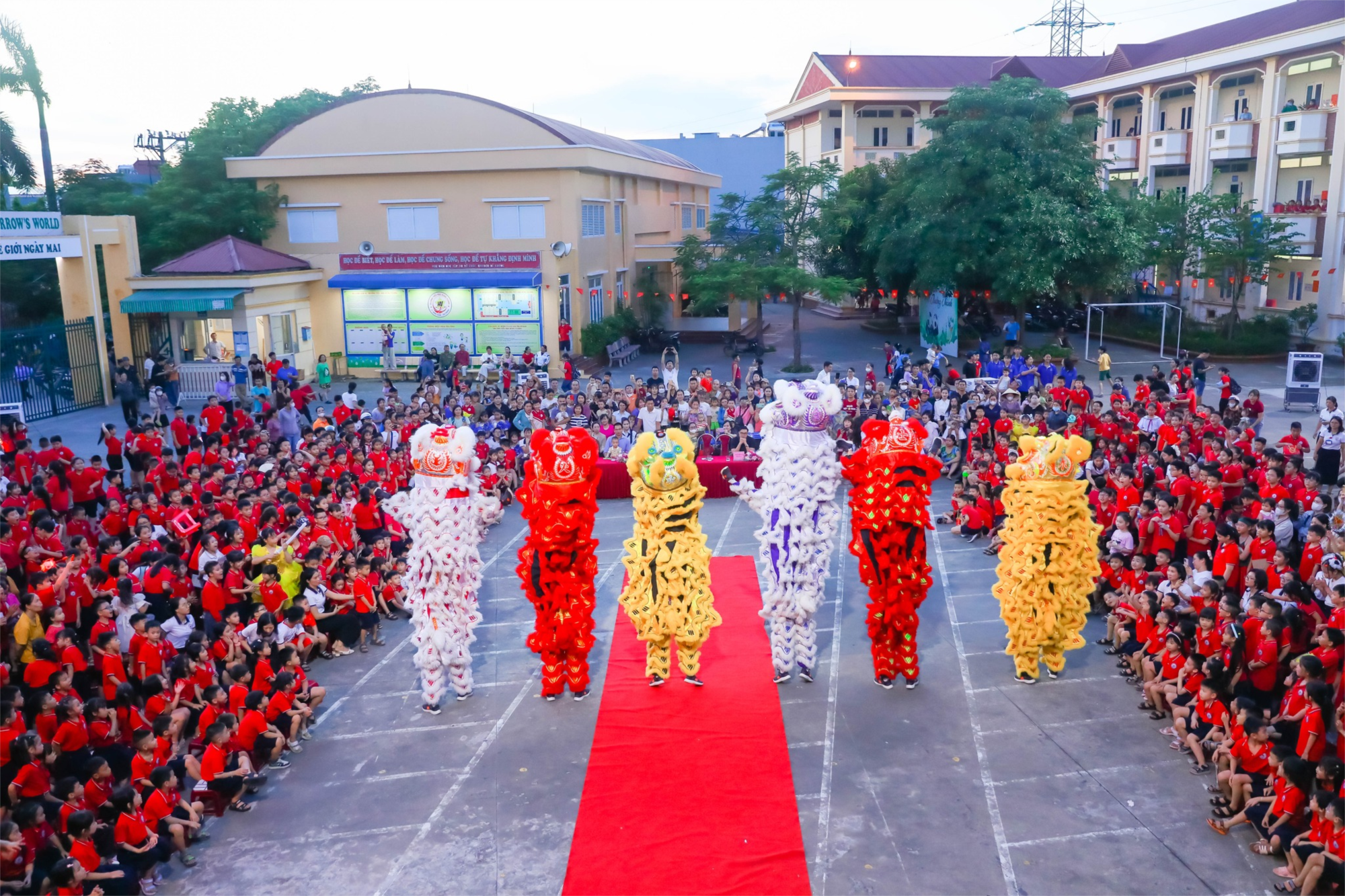 🦁 Không khí càng thêm sôi động với màn múa lân – múa sư tử hoành tráng, mang đến sự hào hứng, náo nức cho các em học sinh. Và rồi cũng đến khoảnh khắc được mong chờ nhất – khoảnh khắc các em học sinh được cùng nhau phá cỗ, sẻ chia niềm vui và tình thân trong mái trường Hùng Vương thân yêu.