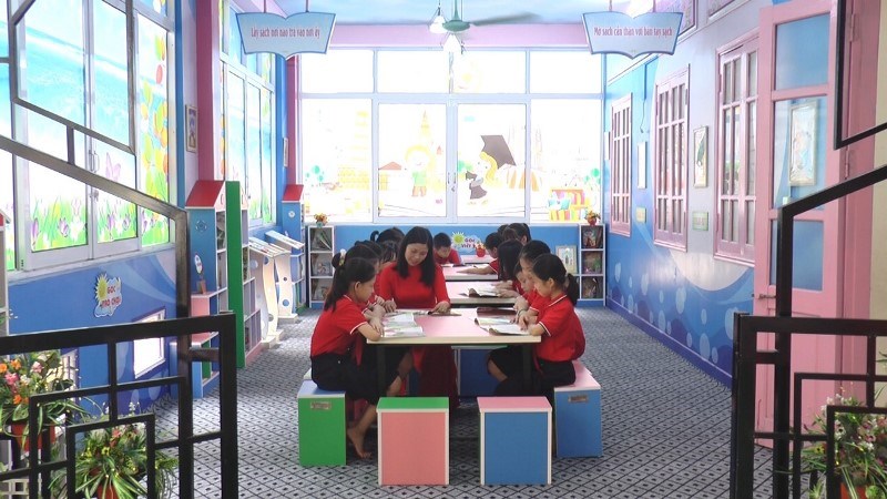 Học sinh đọc sách trong tiết học thư viện