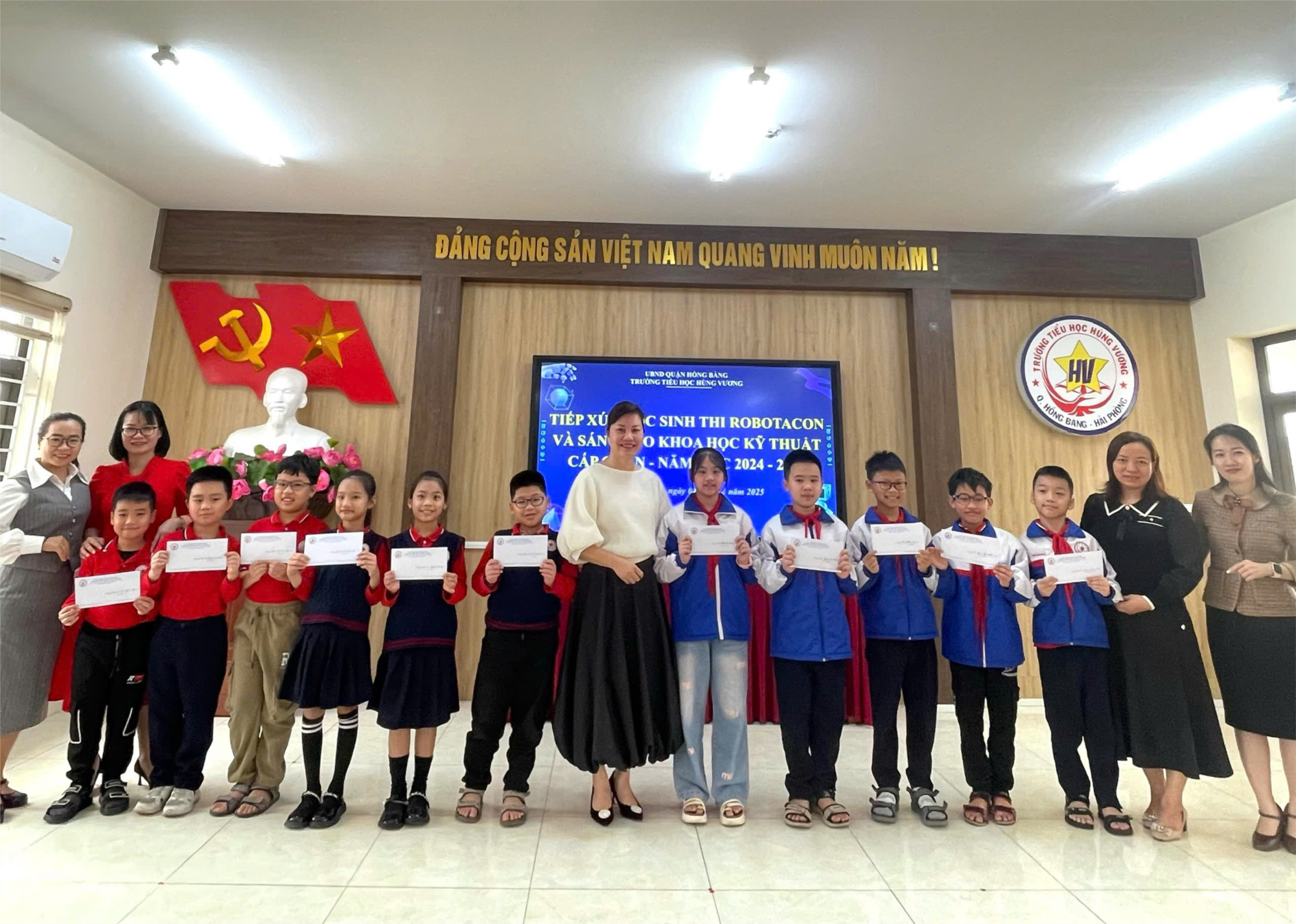 🎉 Sau buổi giao lưu cấp Trường, 6 đội thi của trường Tiểu học Hùng Vương tiếp tục tham gia Sân chơi Khoa học ứng dụng – FIRST LEGO League tại Việt Nam. Sáng ngày 04/4/2025 trường Tiểu học Hùng Vương tổ chức tiếp xúc học sinh thi Robotacon và sáng tạo khoa học kỹ thuật cấp Quận năm học 2024-2025.
