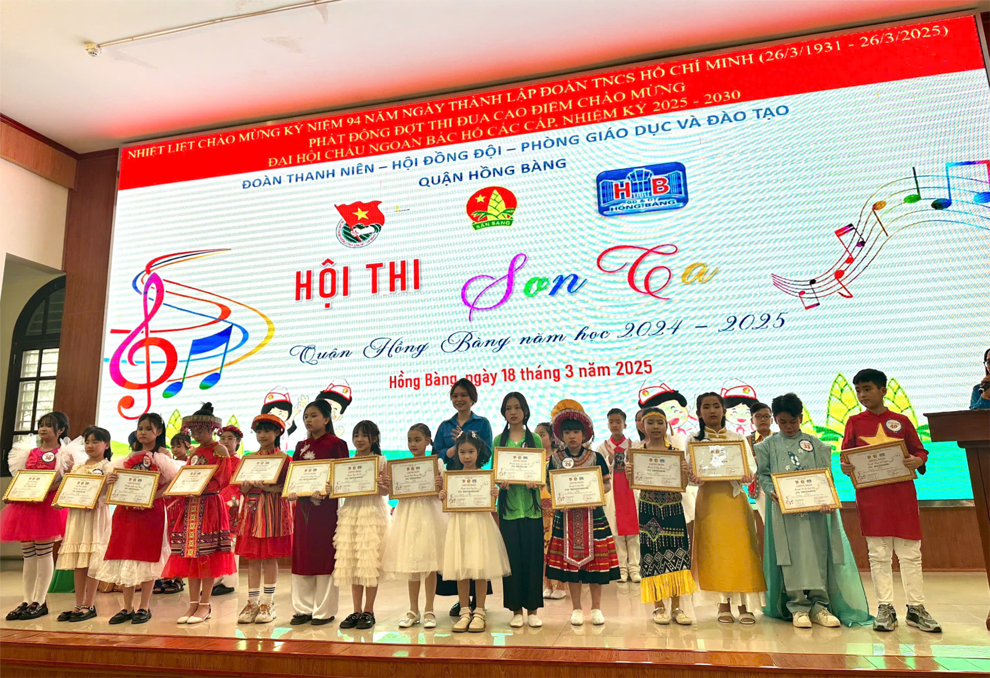 🎶 Chào mừng kỷ niệm 94 năm ngày thành lập Đoàn TNCS Hồ Chí Minh (26/3/1931-26/3/2025) phát động đợt thi đua cao điểm chào mừng Đại hội cháu ngoan Bác Hồ các cấp, nhiệm kỳ 2025-2030 và thực hiện Chương trình công tác Đội và phong trào thiếu nhi năm học 2024-2025; Liên đội trường Tiểu học Hùng Vương tham gia "Hội thi Sơn ca” cấp Quận. Đây là sân chơi bổ ích tạo điều kiện cho các em thể hiện năng khiếu ca hát, bản lĩnh sân khấu.