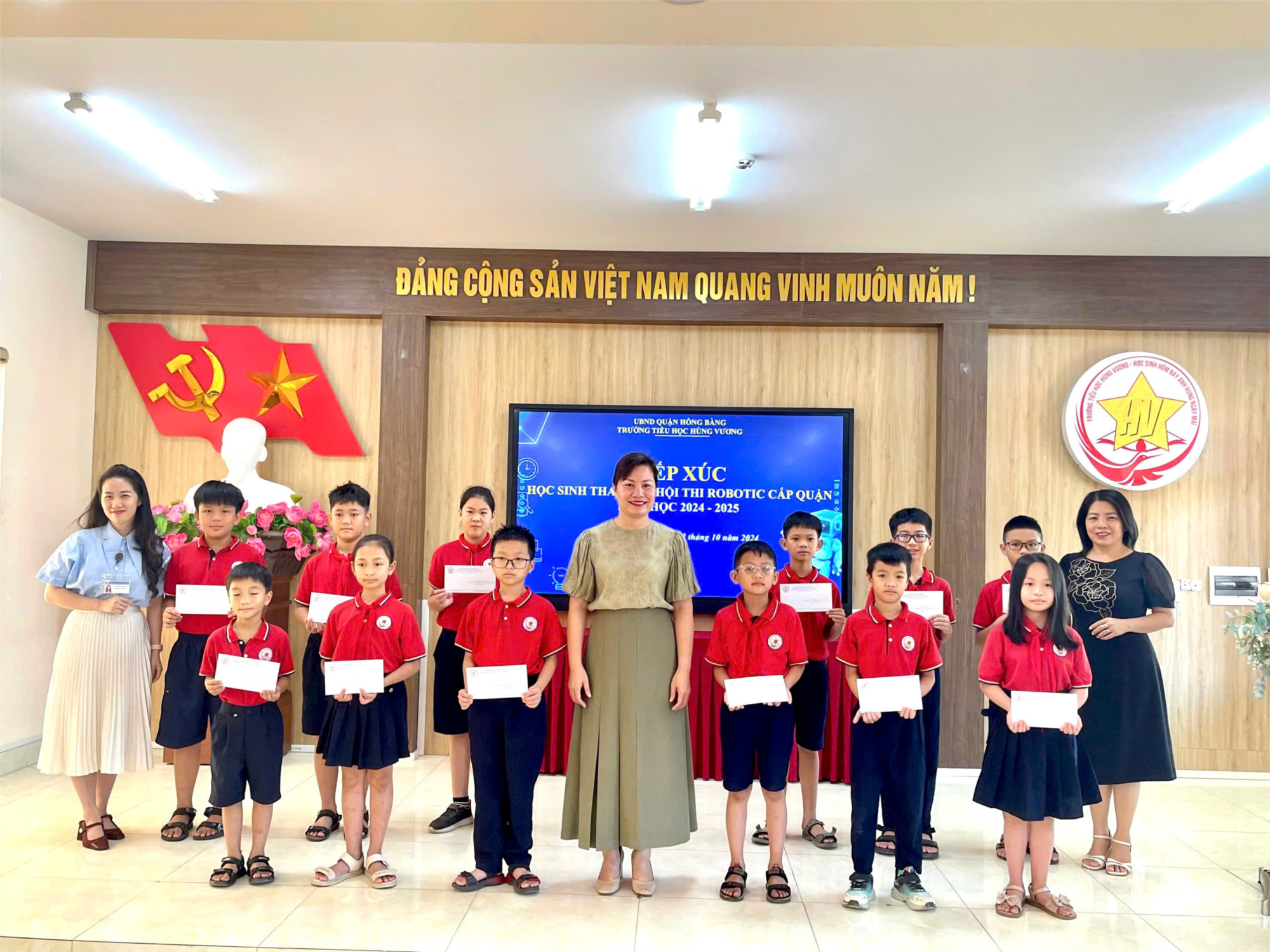 📍Trước khi tham dự Hội thi, trường Tiểu học Hùng Vương tổ chức buổi tiếp xúc với 12 em học sinh tham gia Hội thi Robotic cấp Quận năm học 2024-2025.